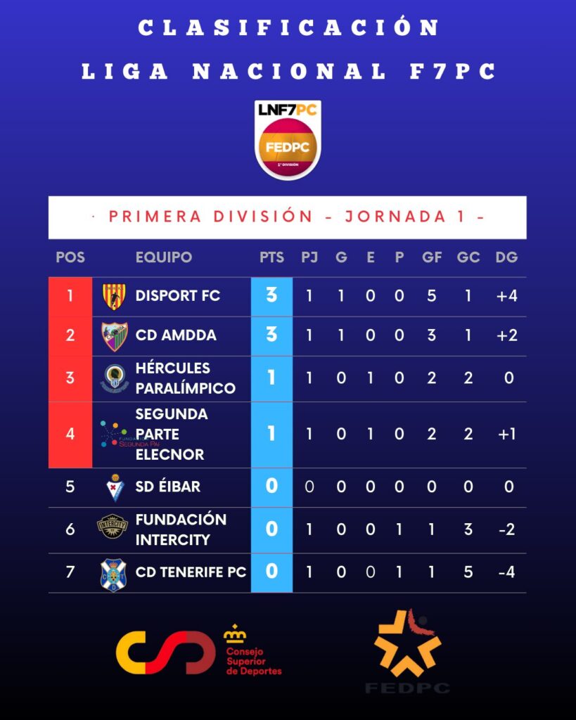 La competición volverá el fin de semana del 14/15 de febrero con dos jornadas que se disputarán en los campos de fútbol Santa Rosalía Maqueda, en Málaga. Eso sí, el Hércules Paralímpico solamente jugará un partido ya que le toca descansar ese domingo. El sábado 14 (16:30) será cuando los blanquiazules se enfrenten al Tenerife. Disport acaba la primera fecha del campeonato líder, ya que goleó a los tinerfeños (5-1). En el otro partido de la primera jornada, el AMDDA malagueño ganó al Fundación Intercity en el estreno de los hombres de negro (1-3).