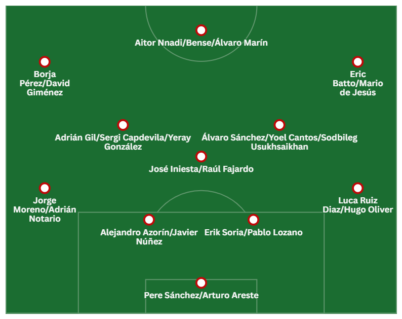 La portería estará defendida por Pere Sánchez y Arturo Areste. Por un lado, Pere es uno de los pocos jugadores del Juvenil A 2024/25 que continúan en el equipo. Eso sí, las bajas de Andrés Luján y Fran Simón han obligado a que tenga que debutar en 3ª RFEF con el Hércules B en el partido de la primera jornada contra el Atzeneta. Por su parte, Arturo llega desde el Kelme Juv. B. Portero que destaca por su altura y sus reflejos, es convocable por la selección venezolana.