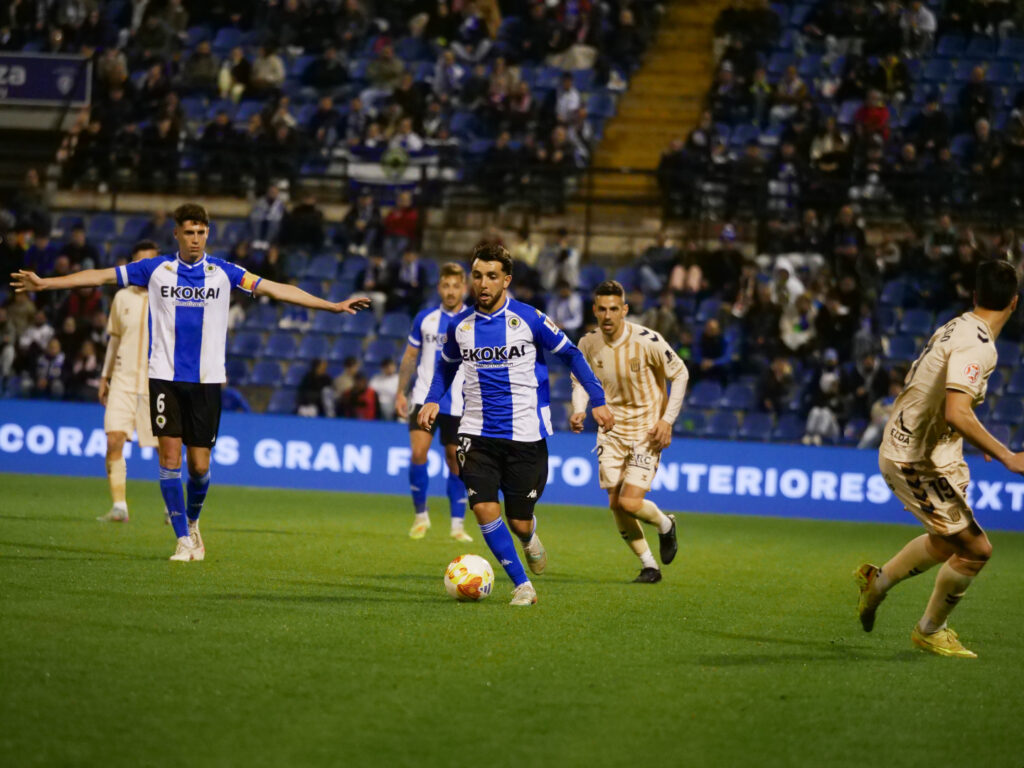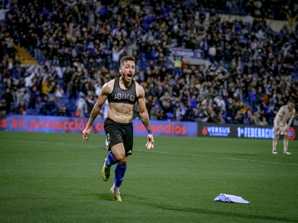 Fue entonces cuando un impetuoso Andy Escudero condujo por banda derecha, mientras Samu Vázquez acompañaba la jugada pegado a la línea de banda. El alicantino da el balón al lateral herculano, y este devuelve la pared con Escudero trazando una gran diagonal entre líneas. El ‘7’ blanquiazul se plantó mano a mano frente a Ramón Vila, pero estaba muy escorado y la definición al segundo palo la logró desviar con las piernas el guardameta. Sin embargo, Unai Ropero aprovechó con picardía el rechace del portero y cabeceó el cuero al fondo de la red. Ropero cumplió la ‘la ley del ex’, quien decidió pedir perdón en el gol por su pasado azulgrana.